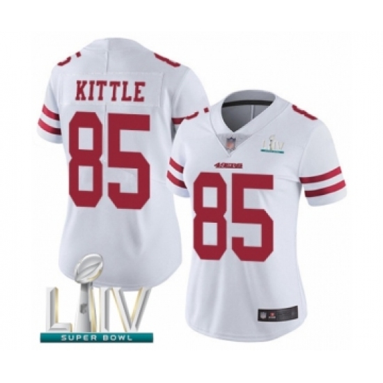 >Women's San Francisco 49ers #85 George Kittle White Vapor Untouchable Limited Player Super Bowl LIV Bound Football Jersey