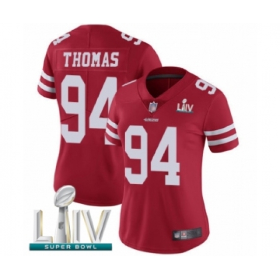 Women's San Francisco 49ers #94 Solomon Thomas Red Team Color Vapor Untouchable Limited Player Super Bowl LIV Bound Football Jersey