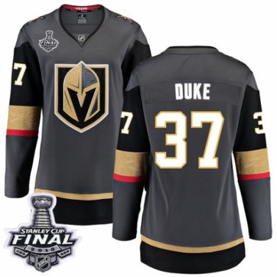 >Women's Vegas Golden Knights #37 Reid Duke Authentic Black Home Fanatics Branded Breakaway 2018 Stanley Cup Final NHL Jersey