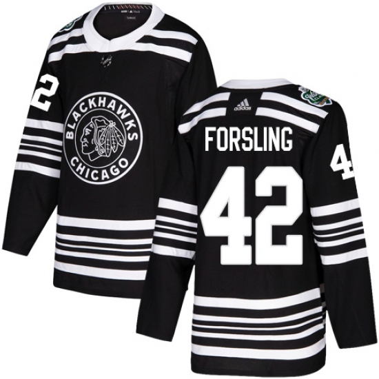 Women's Adidas Chicago Blackhawks #42 Gustav Forsling Authentic Black 2019 Winter Classic NHL Jersey