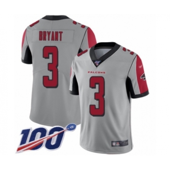 >Youth Atlanta Falcons #3 Matt Bryant Limited Silver Inverted Legend 100th Season Football Jersey
