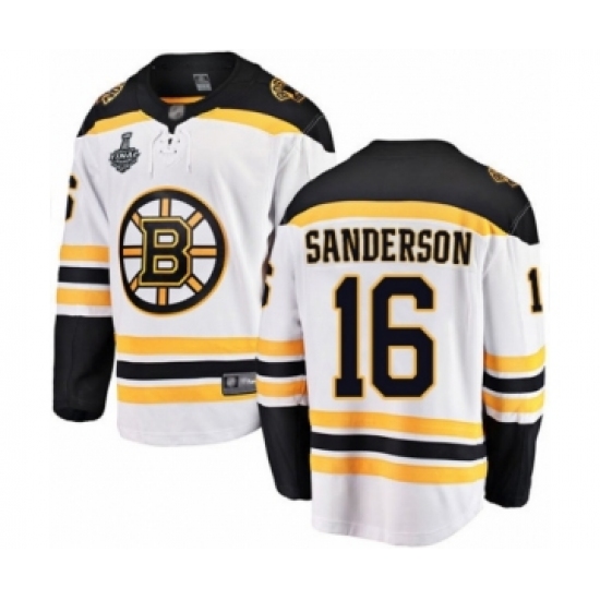 >Youth Boston Bruins #16 Derek Sanderson Authentic White Away Fanatics Branded Breakaway 2019 Stanley Cup Final Bound Hockey Jersey