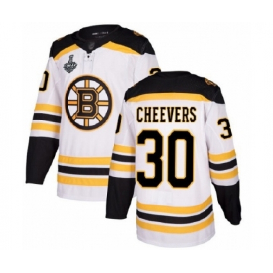 Youth Boston Bruins #30 Gerry Cheevers Authentic White Away 2019 Stanley Cup Final Bound Hockey Jersey