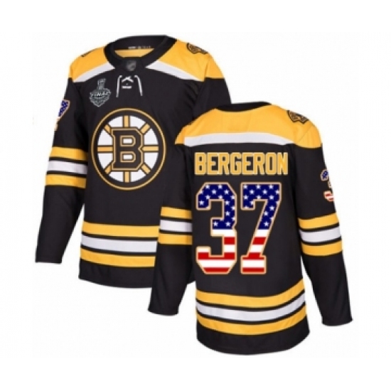 Youth Boston Bruins #37 Patrice Bergeron Authentic Black USA Flag Fashion 2019 Stanley Cup Final Bound Hockey Jersey