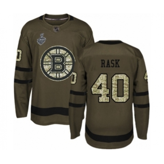 >Youth Boston Bruins #40 Tuukka Rask Authentic Green Salute to Service 2019 Stanley Cup Final Bound Hockey Jersey