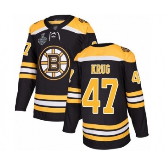 >Youth Boston Bruins #47 Torey Krug Authentic Black Home 2019 Stanley Cup Final Bound Hockey Jersey