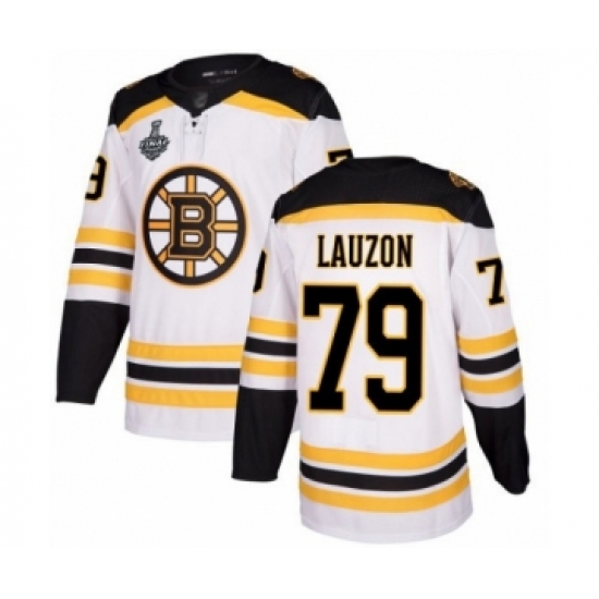 Men's Boston Bruins #79 Jeremy Lauzon Authentic White Away Fanatics Branded Breakaway 2019 Stanley Cup Final Bound Hockey Jersey