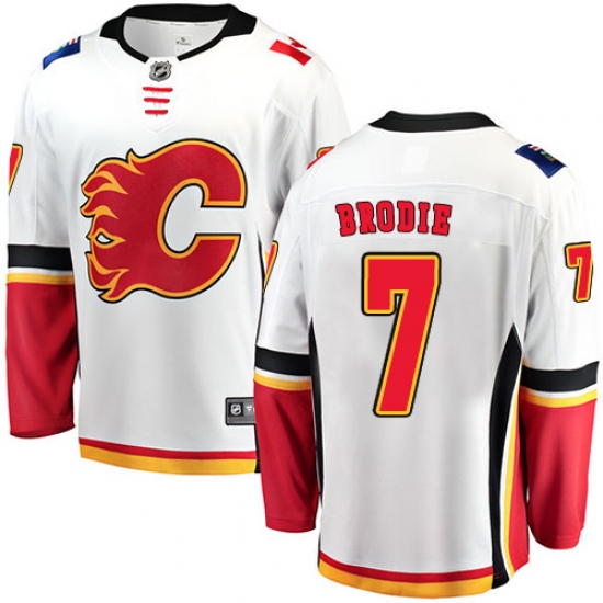Home>NHL>Calgary Flames>TJ Brodie>Youth Calgary Flames #7 TJ Brodie Fanatics Branded White Away Breakaway NHL Jersey