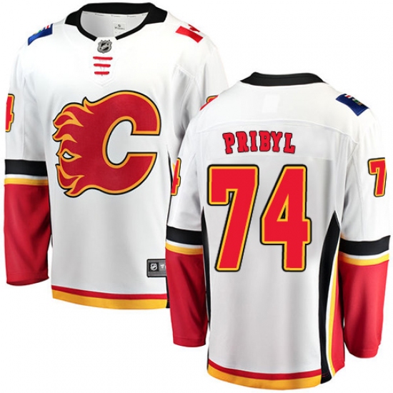 Youth Calgary Flames #74 Daniel Pribyl Fanatics Branded White Away Breakaway NHL Jersey