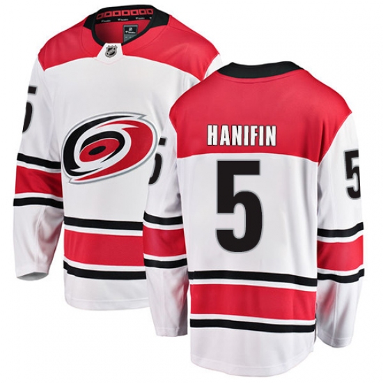 Youth Carolina Hurricanes #5 Noah Hanifin Fanatics Branded White Away Breakaway NHL Jersey