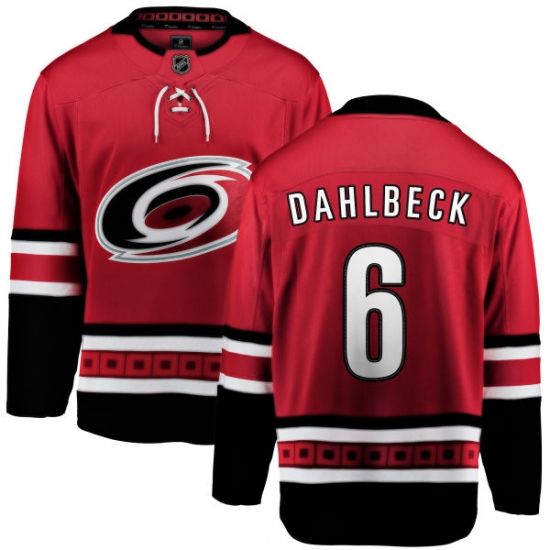 Home>NHL>Carolina Hurricanes>Klas Dahlbeck>Youth Carolina Hurricanes #6 Klas Dahlbeck Fanatics Branded Red Home Breakaway NHL Jersey