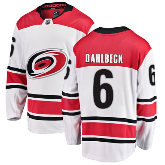 Home>NHL>Carolina Hurricanes>Klas Dahlbeck>Youth Carolina Hurricanes #6 Klas Dahlbeck Fanatics Branded White Away Breakaway NHL Jersey
