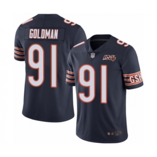 Youth Chicago Bears #91 Eddie Goldman Navy Blue Team Color 100th Season Limited Football Jersey