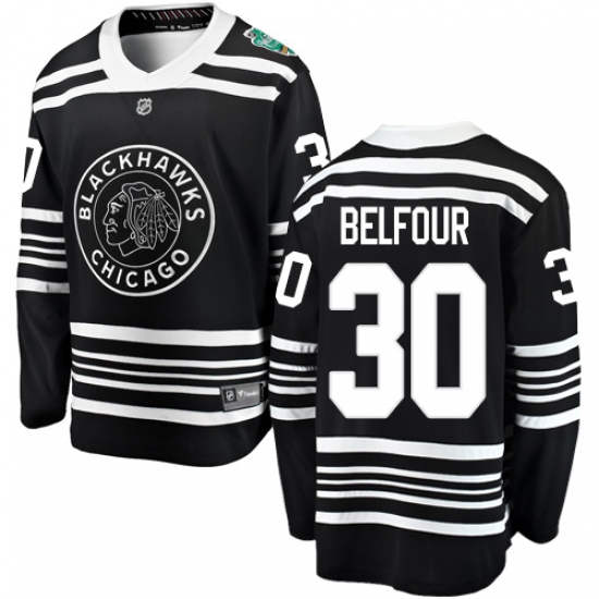 Men's Chicago Blackhawks #30 ED Belfour Black 2019 Winter Classic Fanatics Branded Breakaway NHL Jersey
