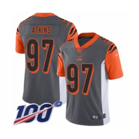 >Youth Cincinnati Bengals #97 Geno Atkins Limited Silver Inverted Legend 100th Season Football Jersey