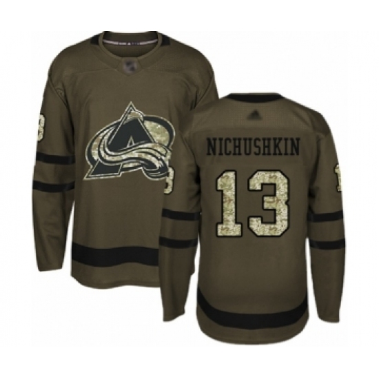 Men's Colorado Avalanche #13 Valeri Nichushkin Authentic Green Salute to Service Hockey Jersey