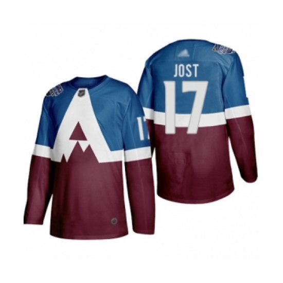 >Youth Colorado Avalanche #17 Tyson Jost Authentic Burgundy Blue 2020 Stadium Series Hockey Jersey