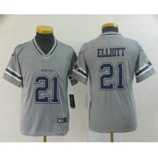 >Youth Dallas Cowboys #21 Ezekiel Elliott Grey 2019 Inverted Legend Stitched NFL Nike Limited Jersey