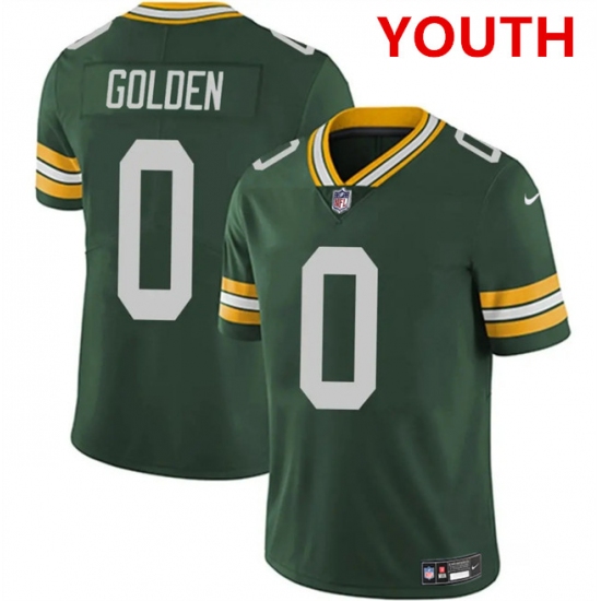 >Youth Green Bay Packers #0 matthew golden green 2025 vapor untouchable limited stitched football jersey