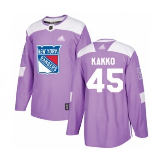 >Youth New York Rangers #45 Kaapo Kakko Authentic Purple Fights Cancer Practice Hockey Jersey
