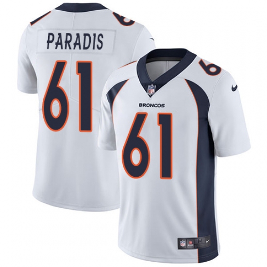 Home>NFL>Denver Broncos>Matt Paradis>Youth Nike Denver Broncos #61 Matt Paradis White Vapor Untouchable Limited Player NFL Jersey