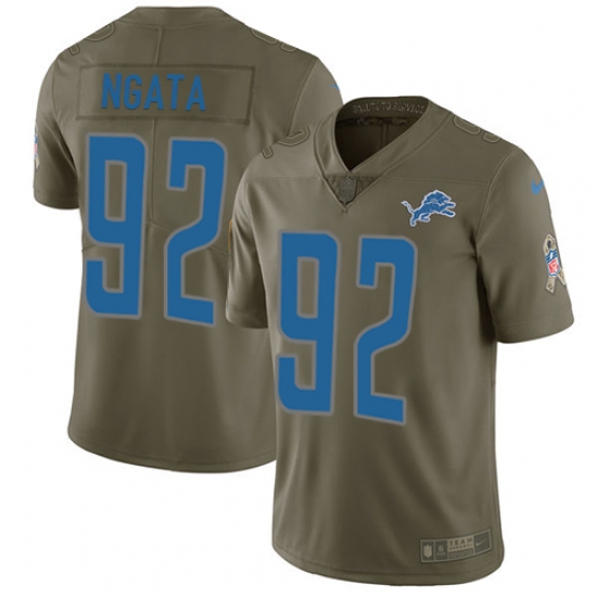 Home>NFL>Detroit Lions>Haloti Ngata>Youth Nike Detroit Lions #92 Haloti Ngata Limited Olive 2017 Salute to Service NFL Jersey