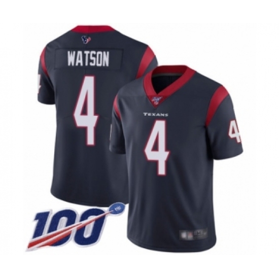 >Youth Nike Houston Texans #4 Deshaun Watson Navy Blue Team Color Vapor Untouchable Limited Player 100th Season NFL Jersey
