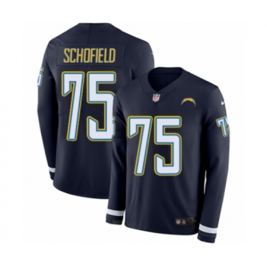 >Youth Nike Los Angeles Chargers #75 Michael Schofield Limited Navy Blue Therma Long Sleeve NFL Jersey
