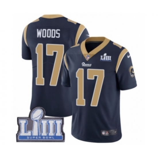 Men's Nike Los Angeles Rams #17 Robert Woods Navy Blue Team Color Vapor Untouchable Elite Player Super Bowl LIII Bound NFL Jersey