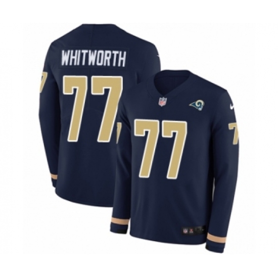 >Youth Nike Los Angeles Rams #77 Andrew Whitworth Limited Navy Blue Therma Long Sleeve NFL Jersey