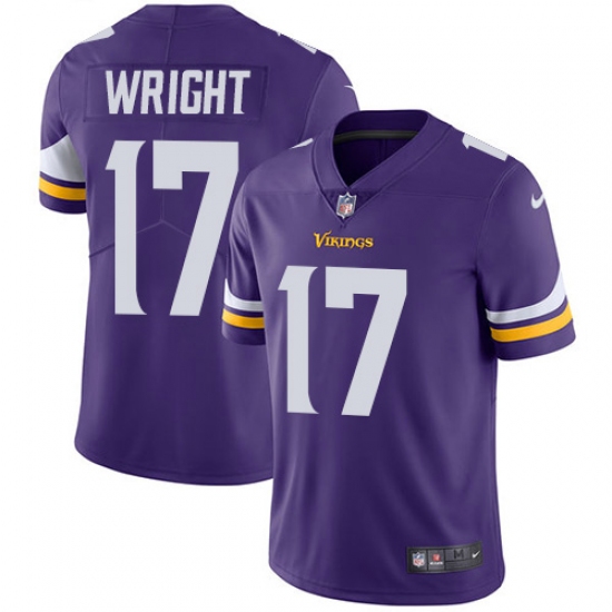 Home>NFL>Minnesota Vikings>Jarius Wright>Youth Nike Minnesota Vikings #17 Jarius Wright Purple Team Color Vapor Untouchable Limited Player NFL Jersey