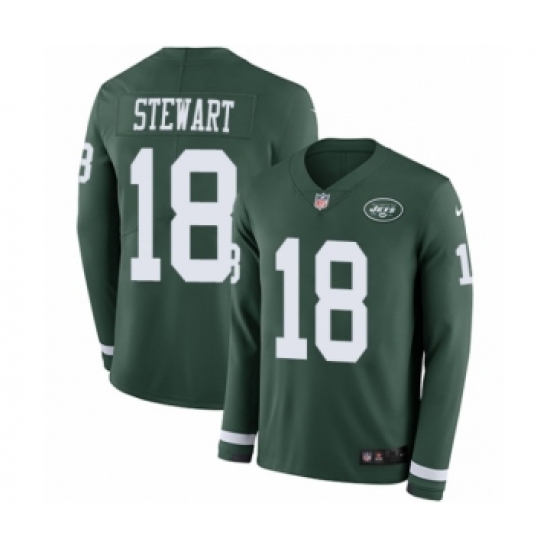 >Youth Nike New York Jets #18 ArDarius Stewart Limited Green Therma Long Sleeve NFL Jersey