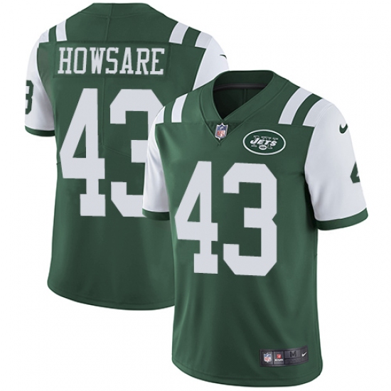 Home>NFL>New York Jets>Julian Howsare>Youth Nike New York Jets #43 Julian Howsare Green Team Color Vapor Untouchable Limited Player NFL Jersey
