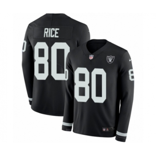 Youth Nike Oakland Raiders #80 Jerry Rice Limited Black Therma Long Sleeve NFL Jersey