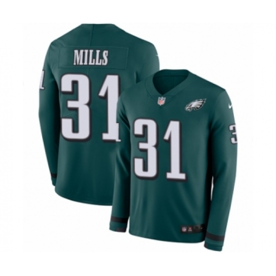 Youth Nike Philadelphia Eagles #31 Jalen Mills Limited Green Therma Long Sleeve NFL Jersey