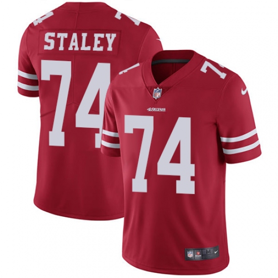 Home>NFL>San Francisco 49ers>Joe Staley>Youth Nike San Francisco 49ers #74 Joe Staley Red Team Color Vapor Untouchable Limited Player NFL Jersey