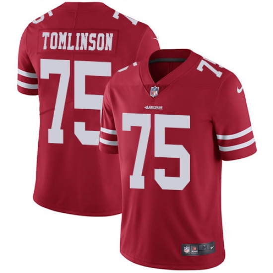 Home>NFL>San Francisco 49ers>Laken Tomlinson>Youth Nike San Francisco 49ers #75 Laken Tomlinson Red Team Color Vapor Untouchable Limited Player NFL Jersey