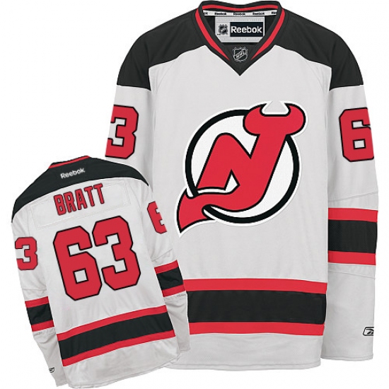 Home>NHL>New Devils Jersey>Jesper Bratt>Youth Reebok New Jersey Devils #63 Jesper Bratt Authentic White Away NHL Jersey