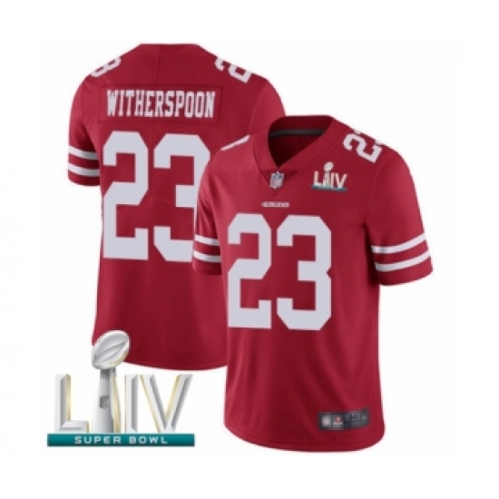 >Youth San Francisco 49ers #23 Ahkello Witherspoon Red Team Color Vapor Untouchable Limited Player Super Bowl LIV Bound Football Jersey