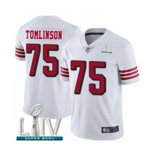 >Youth San Francisco 49ers #75 Laken Tomlinson Limited White Rush Vapor Untouchable Super Bowl LIV Bound Football Jersey