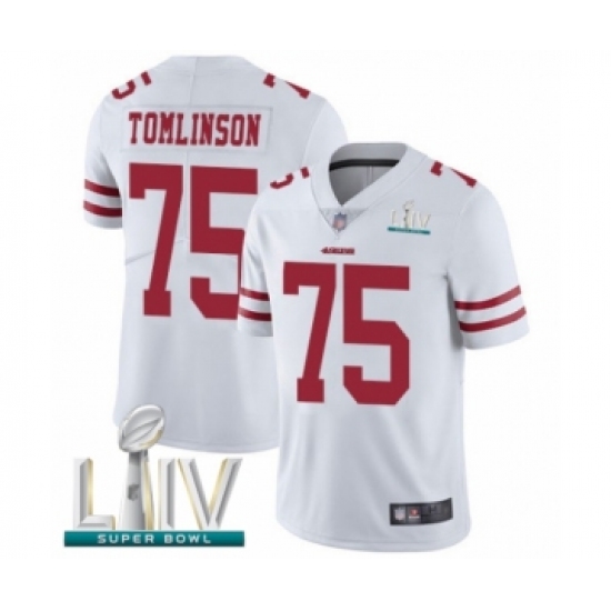 >Youth San Francisco 49ers #75 Laken Tomlinson White Vapor Untouchable Limited Player Super Bowl LIV Bound Football Jersey
