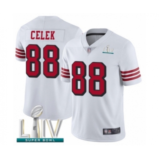 >Youth San Francisco 49ers #88 Garrett Celek Limited White Rush Vapor Untouchable Super Bowl LIV Bound Football Jersey