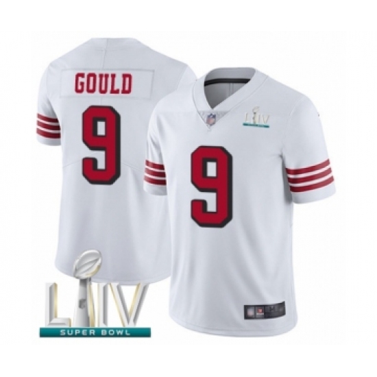 >Youth San Francisco 49ers #9 Robbie Gould Limited White Rush Vapor Untouchable Super Bowl LIV Bound Football Jersey