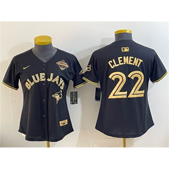 >Youth Toronto Blue Jays #22 Ernie Clement Black Gold 2025 American League Champions Limited Stitched Jersey