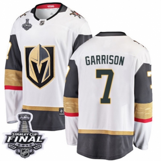 >Youth Vegas Golden Knights #7 Jason Garrison Authentic White Away Fanatics Branded Breakaway 2018 Stanley Cup Final NHL Jersey