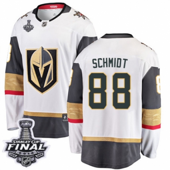 >Youth Vegas Golden Knights #88 Nate Schmidt Authentic White Away Fanatics Branded Breakaway 2018 Stanley Cup Final NHL Jersey